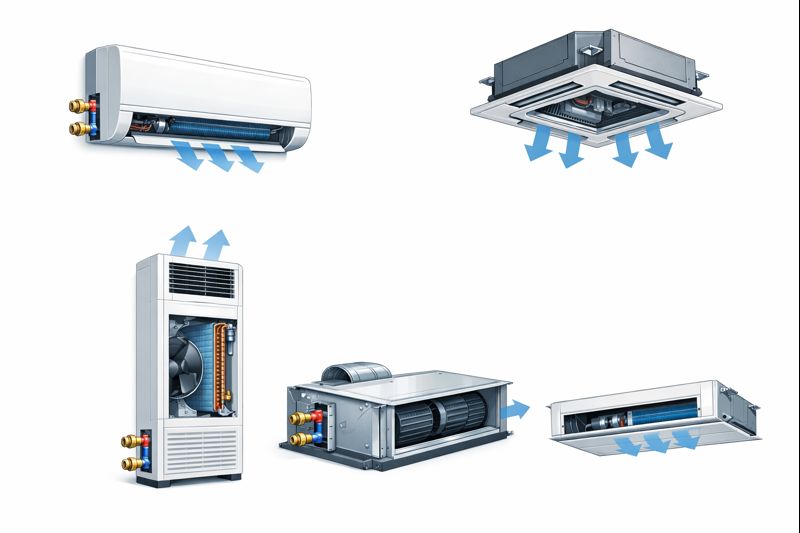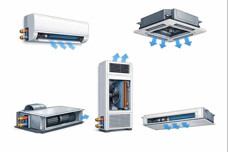 Фанкойлы делятся на четыре типа. Конкретное оборудование подбирается в зависимости от размеров обслуживаемого пространства, желаемых функций, особенностей монтажа.