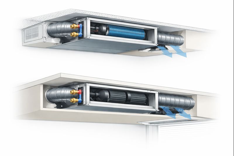Встраиваемые фанкойлы скрытой установки – это оборудование для охлаждения или нагрева воздуха в помещениях коммерческого назначения. Располагаются в межпотолочном или межстеновом пространстве.