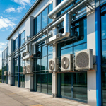 Это высокотехнологичные комплексы, предполагающие монтаж одного или нескольких мощных внешних блоков, к которым подключаются десятки внутренних модулей (до 30–64 единиц). Главное преимущество — колоссальная гибкость. Трассы хладагента (фреона) могут достигать 300 метров, а перепад высот — до 50 метров. Такие промышленные кондиционеры идеальны для многоэтажных производственных комплексов, где для каждого кабинета или участка цеха требуется свой температурный режим.