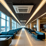 Что касается внутренних блоков, которые монтируются внутри здания, для аэропортов и вокзалов чаще всего применяются кассетные и канальные модули. Они помимо функции охлаждения и нагрева воздуха, могут дополняться опциями вентиляции, фильтрации, осушения воздуха. В некоторых отдельно взятых помещениях, которые не обладают большой площадью можно применять классические сплит-системы.